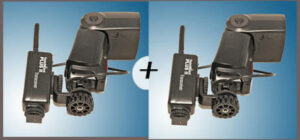 Cat# DSD-3T Includes “Double Strobe Dolly” transmitter mount and 3 “Xtend Arms” 6 thumb screws and washers . With this bracket and a Y cable the setup will give you a one stop increase in light when using two flashes (at maximum power on manual), by setting both flashes at half the required power, recycle time is cut in half from what it would be when using only one flash.